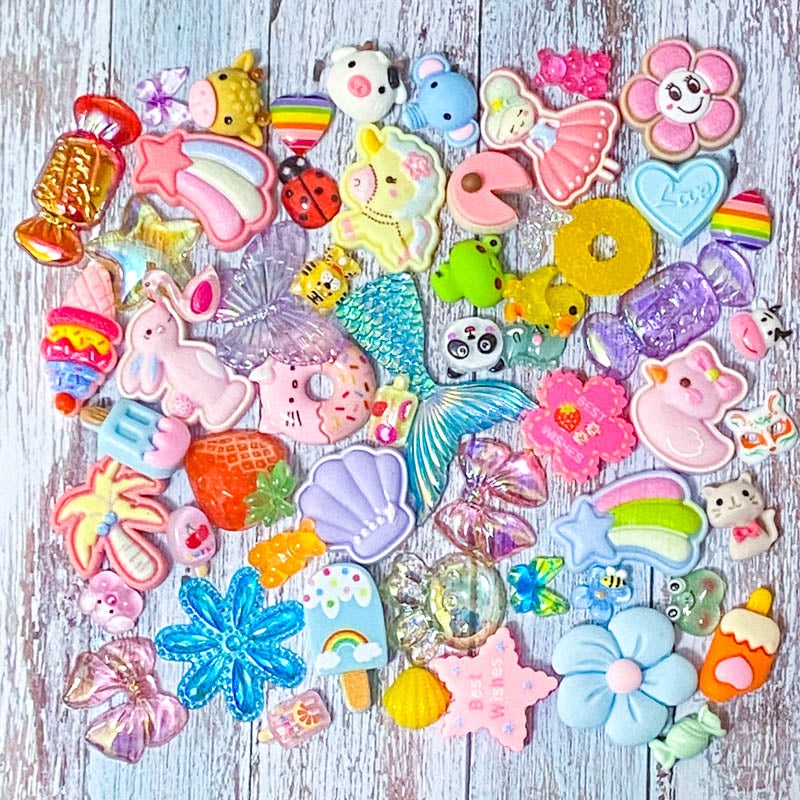 Choose either smaller or larger size of flatback for the bundles. The bundle will contain 15 resin and acrylic flatbacks that are slightly smaller than the other lucky dip flatback bundle. Styles will be the ones in the photo or similar type of fb. Somefla