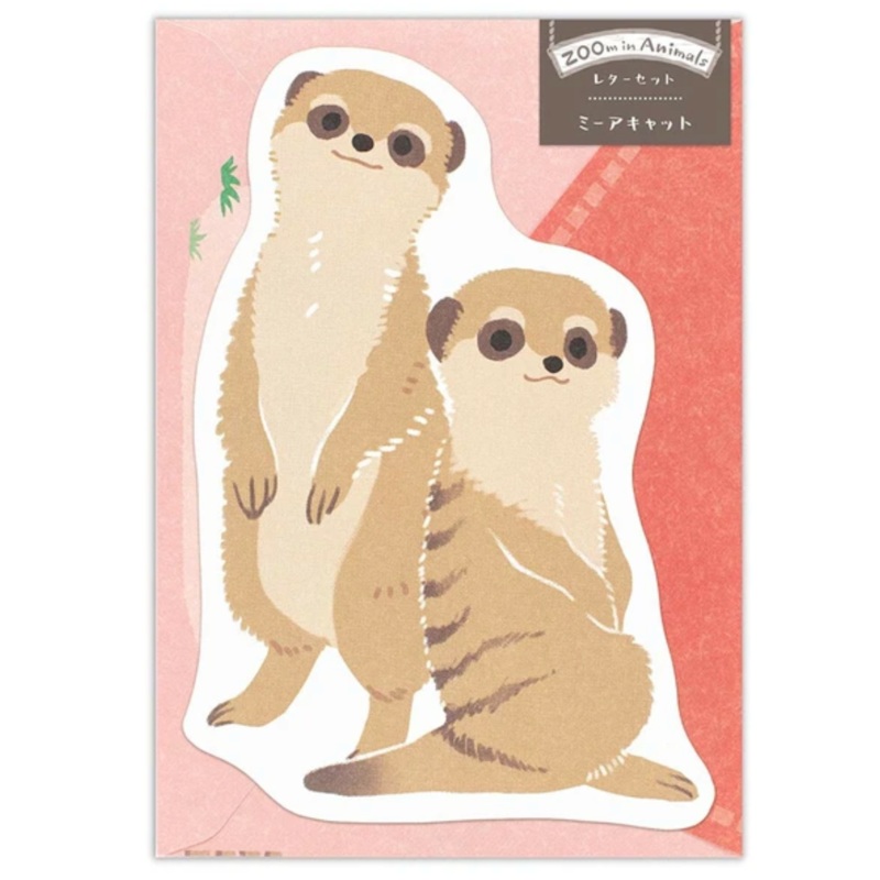 This Japanese letter set comes with 6 sheets of paper shaped like a pair of meerkats! Write letters your friends and family with this cute set - the envelopes have a fun design too. Details: 6letter paper sheets 3"x 2.5" 3 envelopes Made in Japan