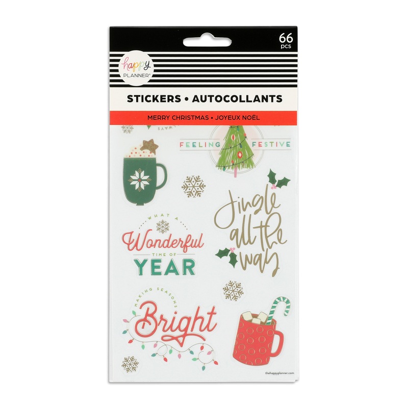 Add these festive Christmas themed stickers to your Big Happy Planner, scrapbook, and DIY projects. This set comes with 5 sheets and 66 stickers for Christmas cards. Add these cute icons to celebrate the most wonderful time of the year!5 sticker sheets wit