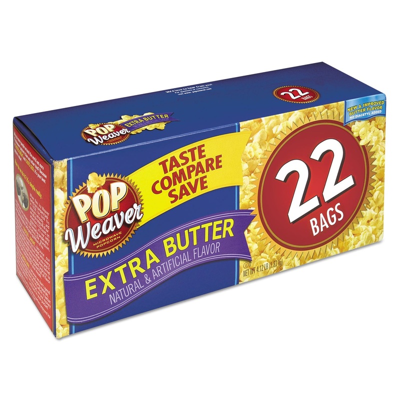 Microwave Popcorn, Extra Butter, 2.5oz Bag, 22/box