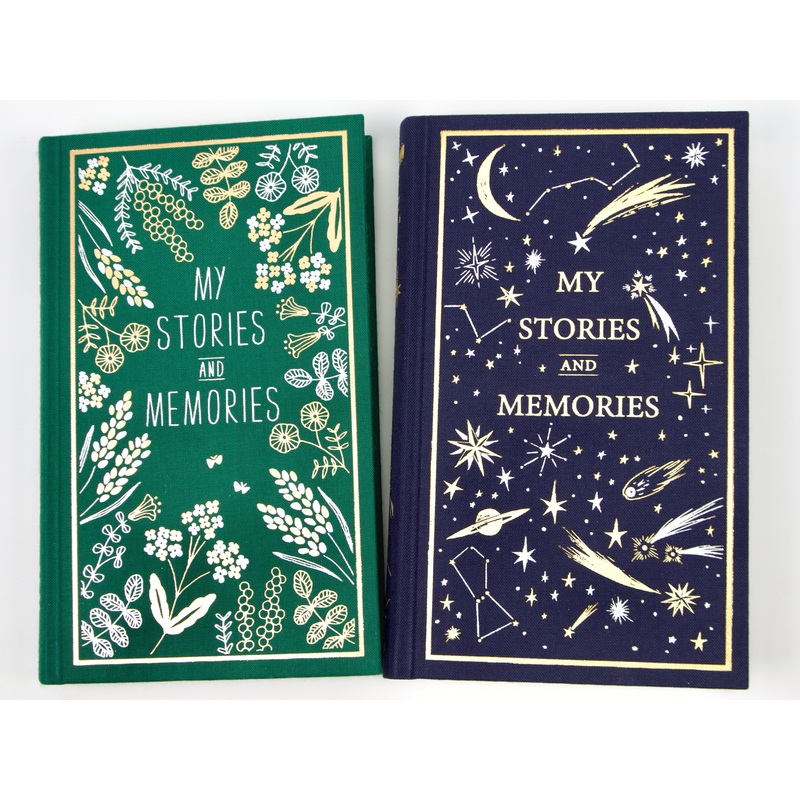 Midori 1 Year Diary My Stories and Memories provides 1 page per day for a year's worth of journaling. There are a total of 368 pages. The hardbound diary is covered with soft fabric, and the metallic foil on the fabric creates a luxurious design. The secti