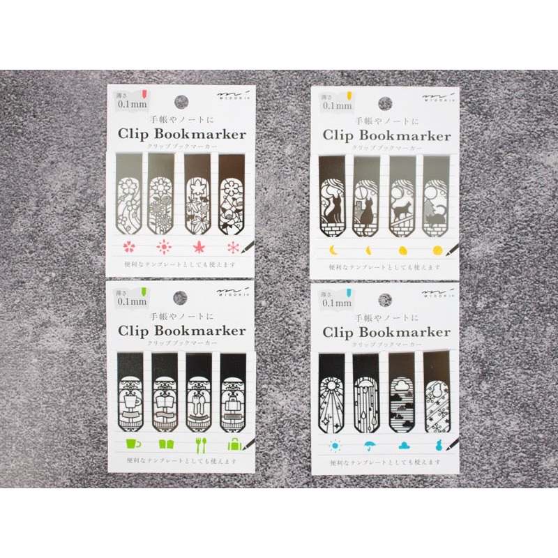 The Midori Clip Bookmarker with Icon Stencil is a superfine (.15mm) stainless steel clip for marking pages and having an icon stencil at hand. Since the bookmarker is so fine, it won’t interfere with writing or turning of pages.