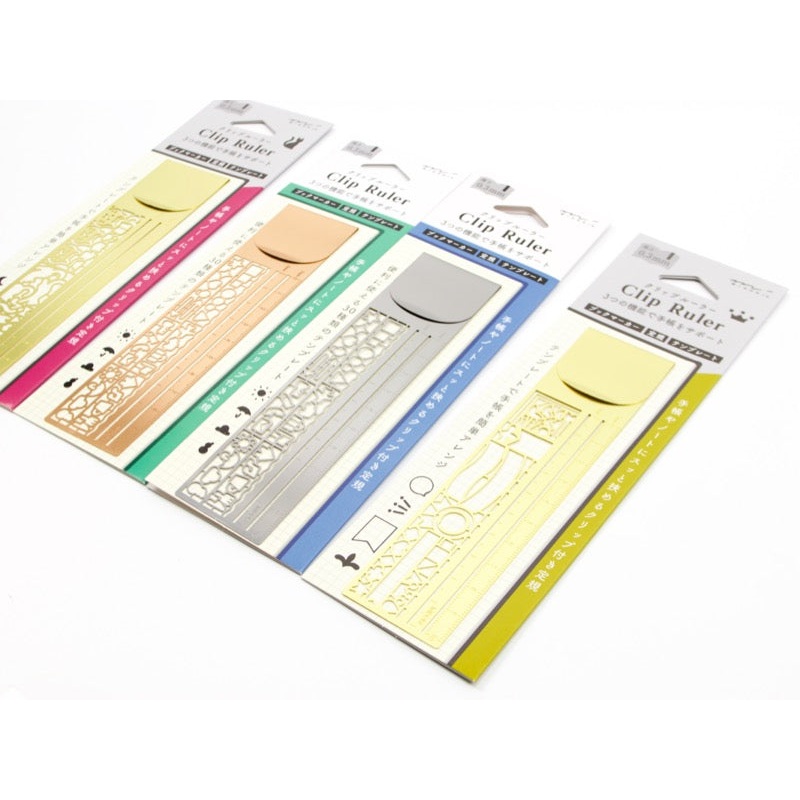 The Midori Clip Ruler with Icon Stencil is a superfine (.3mm) 3-in-1 tool made from copper and stainless steel. Use the clip for marking pages in your notebook or planner, the ruler for lines and measurement, and the icon stencils for bullet journaling. This is a truly useful tool that is also beautiful!