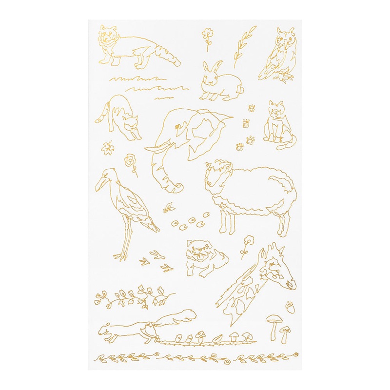 Midori Foil Transfer Stickers for Journalingcome with 1 sheet oftransfer stickerdesigns and are perfect for decoratingall kinds of paper surfaces. Once applied, they give the appearance of agold foiledmotif.
