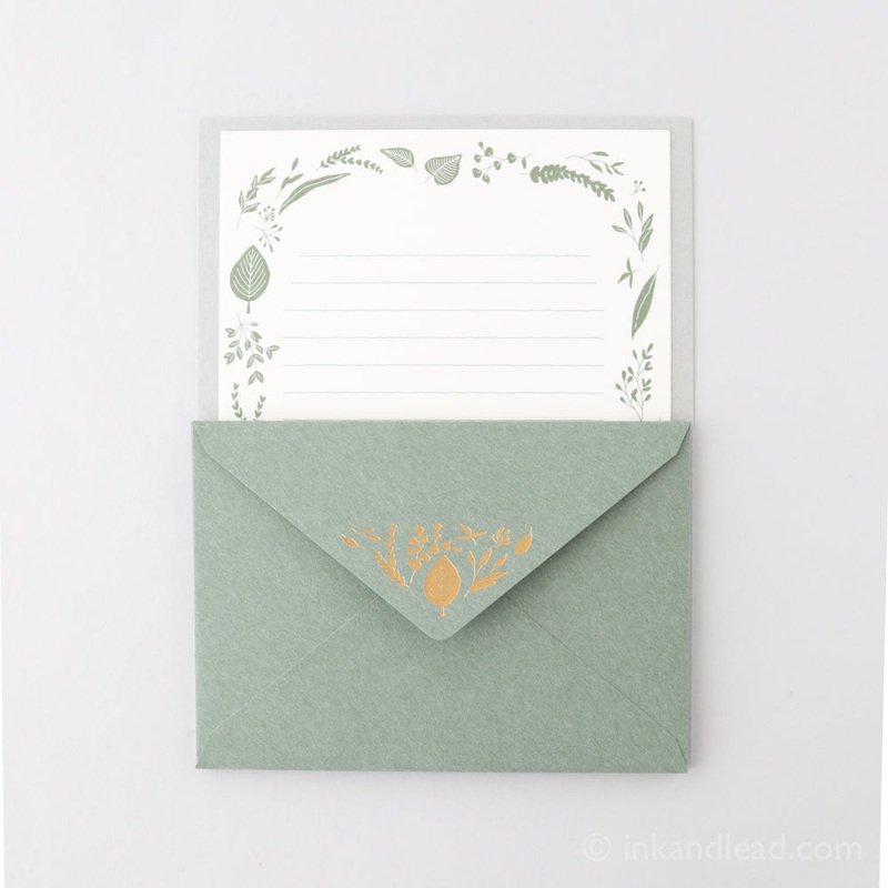 Midori Letter Set Foil Stamped Envelope – Leaf Pattern