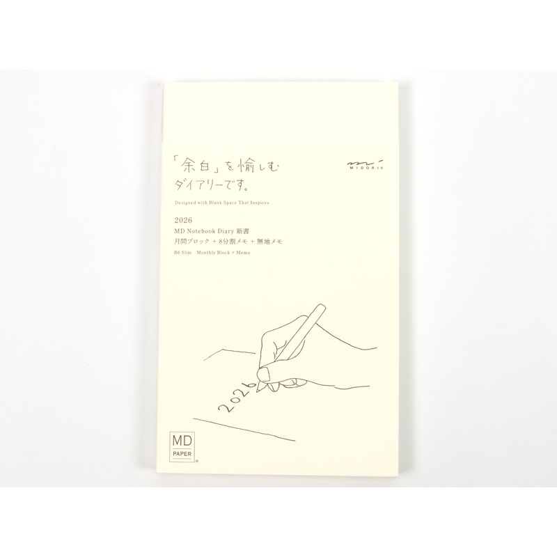 Introducing the Midori B6 Slim Calendar for 2026! The MD Notebook is designed for simplicity so that what’s on your mind can be easily put on paper. This notebook features a minimalist design; no bells, no whistles, and no cover! Includes monthly spreads for December 2025 through January 2027 (14 months), and 113 pages of memo broken into subtle sections with the use of lighter and darker lines, and 32 blank pages. This is a beautiful, minimal planner.