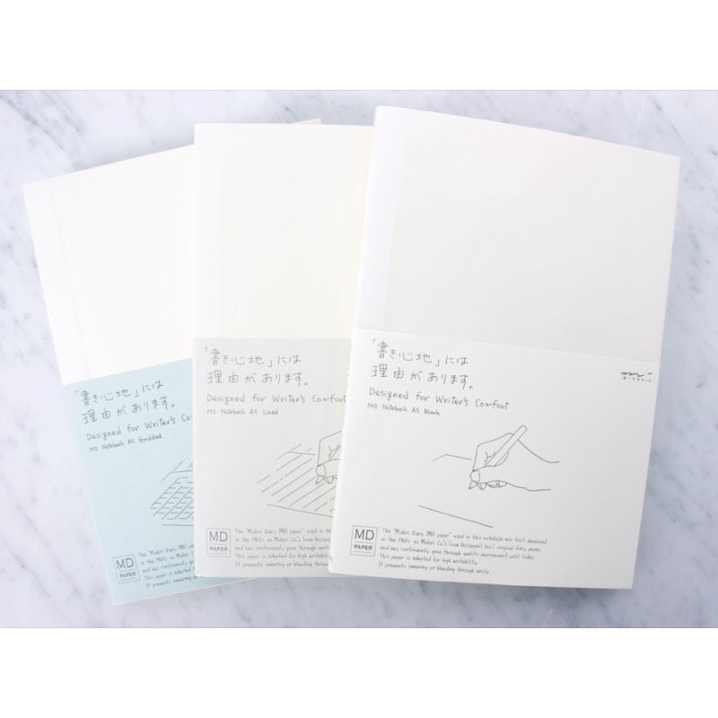 Introducing the Midori A5 Notebook! The MD Notebook is designed for simplicity so that what's on your mind can be easily put on paper. This notebook features a minimalist design; no bells, no whistles, and no cover! Available in your choice of Blank, Lined