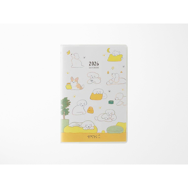The Midori 2026 Pocket Diary Mini - Dog is a pocket-sized diary with a monthly block layout, dated January 2026 March 2027. With adorable dog illustrations. The Mini size is lightweight and easy to carry with you.Dated Jan 2026 - March 2027Mini size measur