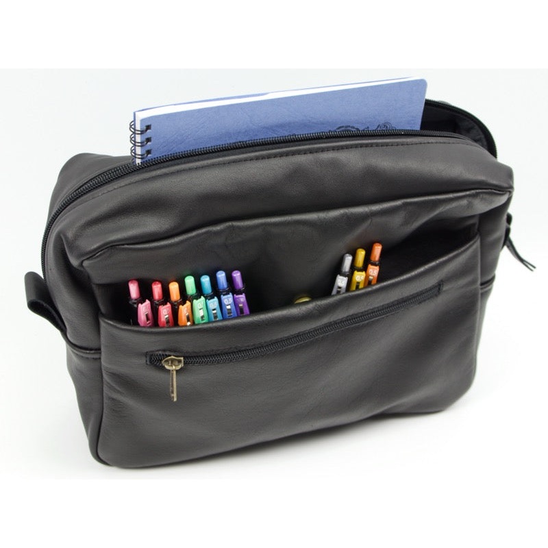 Hand-crafted in Athens, Greece by milloo, The milloo Ydra is a notebook and planner organizer for your backpack or tote bag! This bag will fit up to B5 size notebooks. A Standard Size Traveler’s Notebook plus a Rec style pen case and all your planner accessories like stickers can fit together in this organizer, making it a very roomy and versatile organizer. One side of the organizer has two external slip pockets, which can be used for more pen or notepads. The opposite side has a wide magnetic button closure pocket with another external zipper compartment for tucking away even more planner supplies. Internally, the organizer is one large space with two internal zipper pockets, one on each side. This case is made from a beautiful, black, Italian cow leather.
