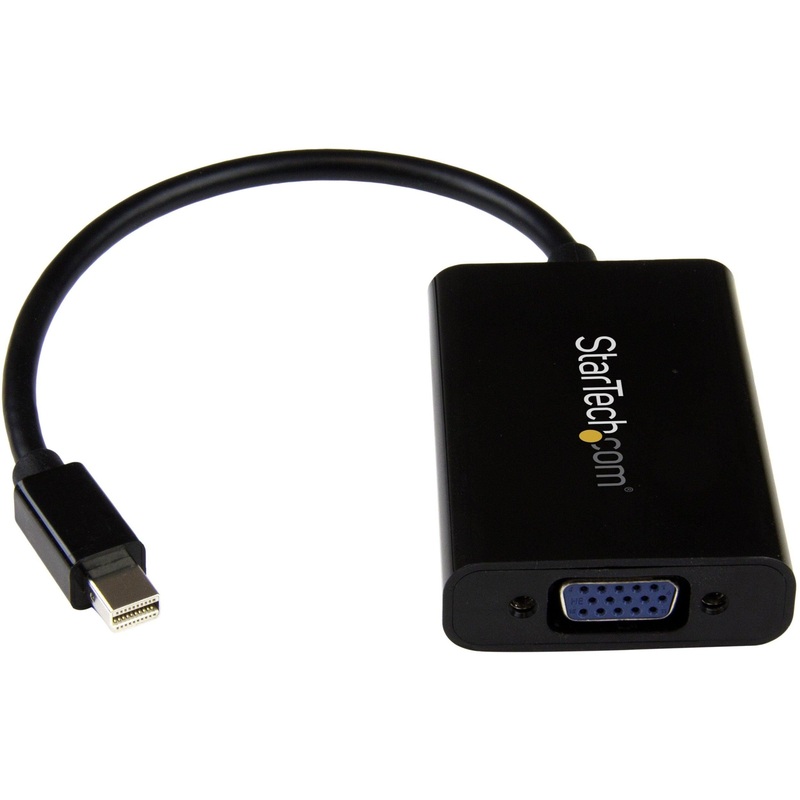 Marketing Information: This unique Mini DisplayPort to VGA adapter is equipped with a built-in audio port which lets you connect Mini DisplayPort equipped devices, such as a Microsoft Surface Pro 3 tablet or MacBook Air laptop, to a VGA display or projector with audio. Share your presentations and videos Because most boardrooms are set up differently, the length of cables available in each room vary. Not all laptops have the Mini DisplayPort (mDP) and audio ports positioned on the same side, which can become awkward when you’re trying to share your presentations. It can also mean that some ports may be just out of reach during a meeting. This convenient adapter positions your audio and video ports on the same side of your laptop, to ensure that all of the ports you need are accessible when you need them. Substitute for a damaged audio port If the audio port on your mobile device is damaged or blocked by other connections, this convenient adapter guarantees that you’ll always have all of the ports you need for every presentation. By connecting audio to your laptop through the adapter, you can be prepared for any situation. In order to use the audio function of the adapter you need to power the adapter through a USB port on your laptop, or through a charge port on a USB grommet. Simply plug a Micro USB cable from the adapter into the USB port and audio will be available when you deliver your presentation. Create a clutter-free environment The adapter can also be used for connecting your laptop or desktop computer to your monitor and speakers. The adapter and connected cables can be placed nicely at the back of your monitor to create a tidy setup between all of your devices. Arrive prepared, wherever you go This mDP to VGA adapter is extremely portable with a lightweight, small-footprint design. It’s the perfect accessory to carry with your mobile devices, fitting easily into your laptop bag or carrying case. Its ultra-portable design makes the adapter ideal for BYOD (Bring Your Own Device) applications at the office. It also enables you to arrive prepared when you’re presenting to a potential client, teaching off-site, or traveling to a meet with a customer. The adapter is compatible with Intel Thunderbolt, when connected directly to a supporting DisplayPort over Thunderbolt I/O port, and supports resolutions up to 1920×1200 (WUXGA). The MDP2VGAA is backed by a 2-year StarTech.com warranty and free lifetime technical support.