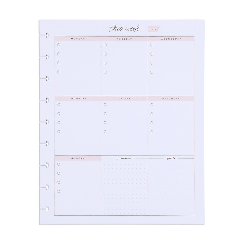 Productivity made easy. Stay on track with our Weekly Minimalist Classic Fill Paper. These simple designed pages give you a quick window into your week and what you need to accomplish. Jot down your daily to-dos and check them off one by one.Pack includes