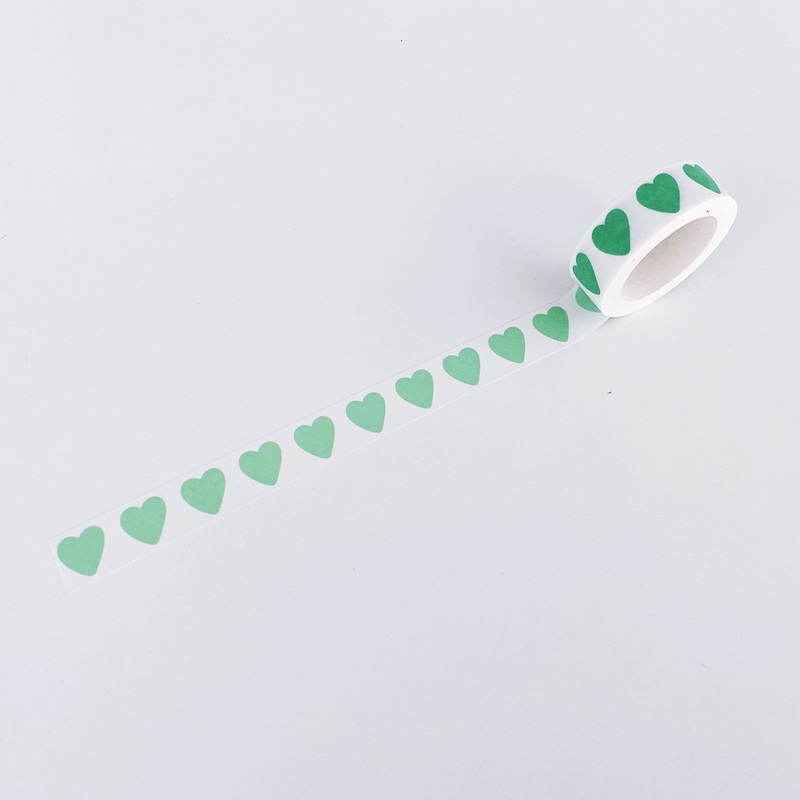 This roll of cute washi tape has a row of mint hearts!Washi tape can be used to decorate your mail, planners and so much more! Details: One roll of washi tape 15mm wide 10m in length Designed in Austin, Texas Love stationery, do good. A portion of sales fr