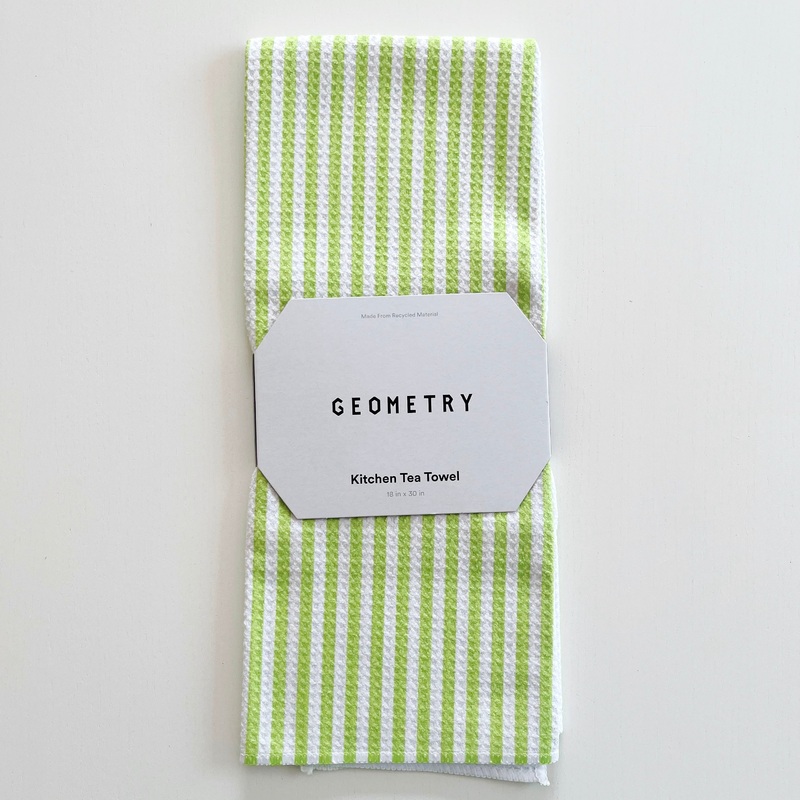 Brighten up your kitchen space with this mint stripes tea towel! This minimal design will look good in any kitchen and home. It has a waffle weave and it's also quick drying too! Details: One tea towel with hang loop Recycled polyester 18" x 30" Quick dryi