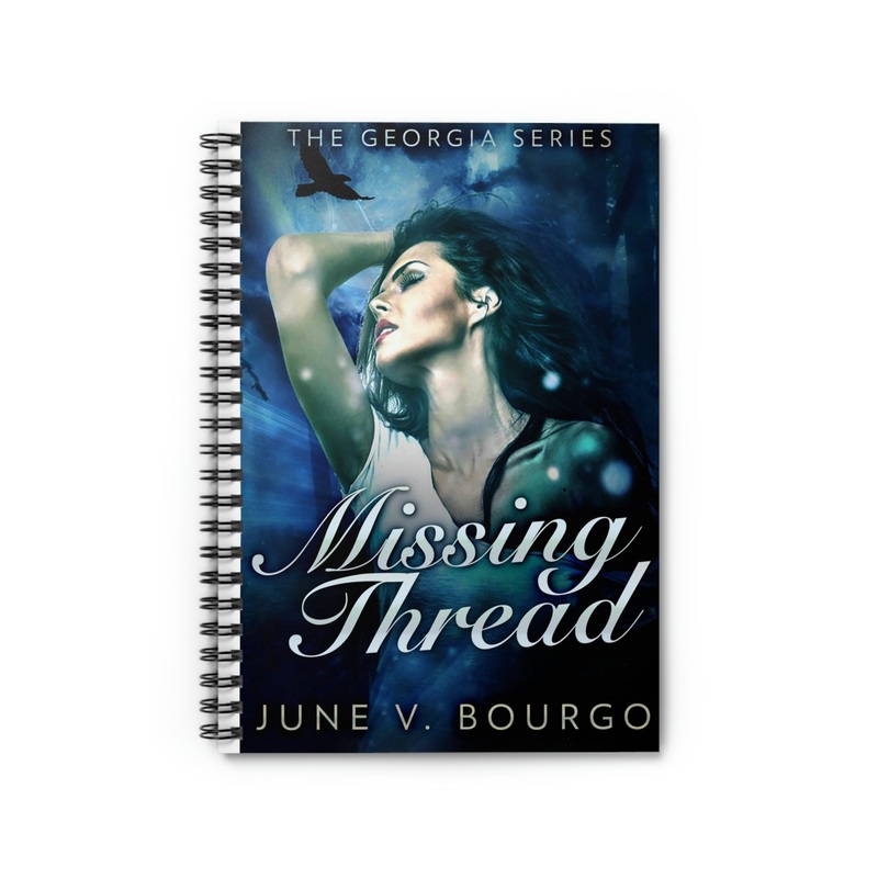 Shopping lists, school notes or poems – this 118 page spiral notebook with ruled line paper is a perfect companion in everyday life. The cover art in this spiral notebook is from June V. Bourgo’s book, Missing Thread.