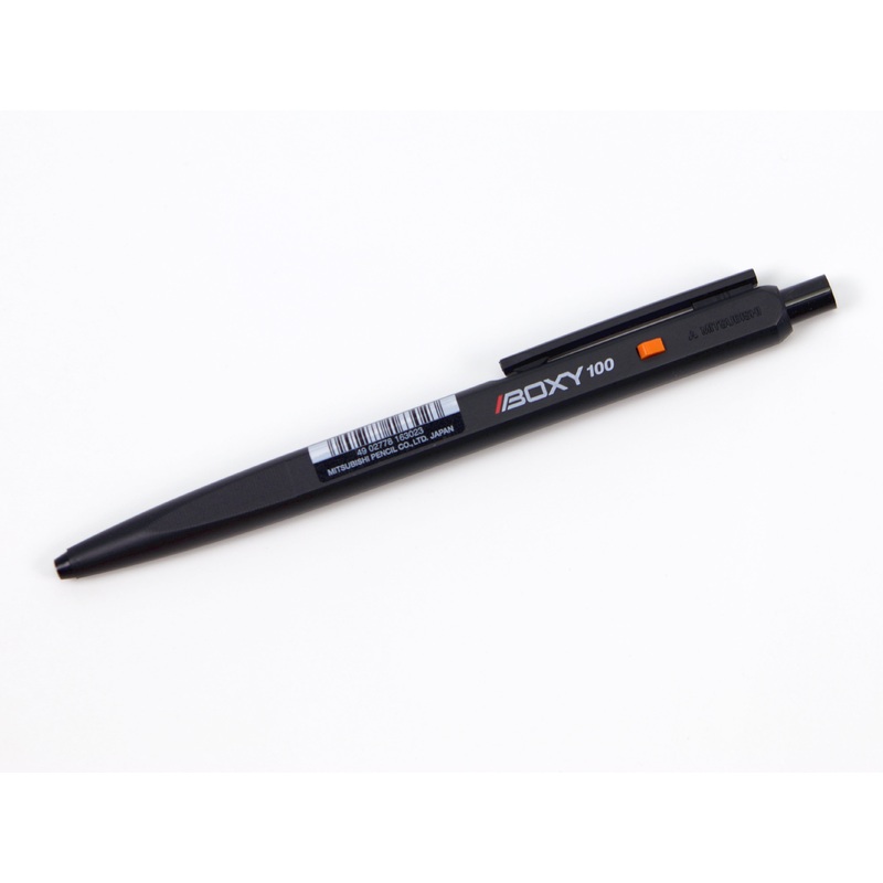 The Mitsubishi Boxy is a unique .7mm ballpoint pen with a click-top and a side button to retract your pen nose. Its design has been around for 50 years! It has a very satisfying click, and this style of barrel is like a puzzle to refill..7mm black ballpoin