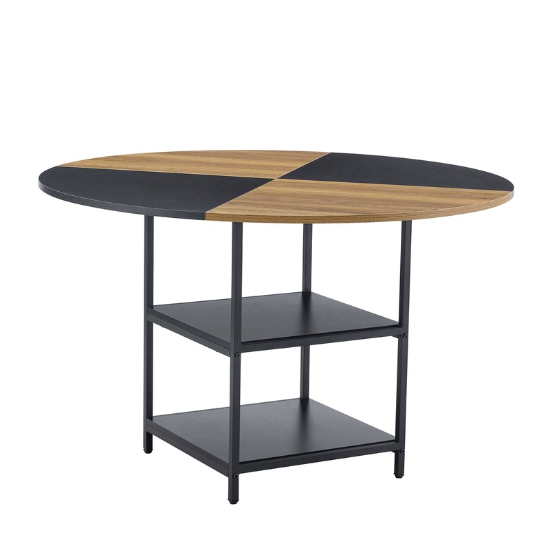 Modern Splicing Circular Dining Table With Double Layer Storage – Black / Wood