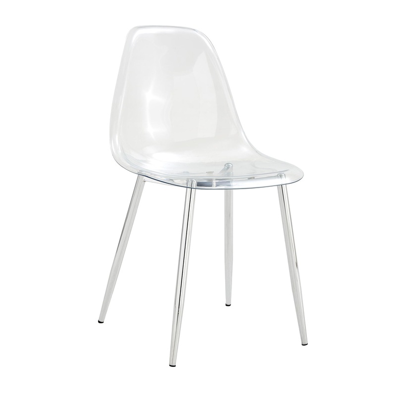 Stylish Ergonomic Dining Chair With Metal Legs And Transparent Seat Cushion (Set of 3) – Silver / Transparent