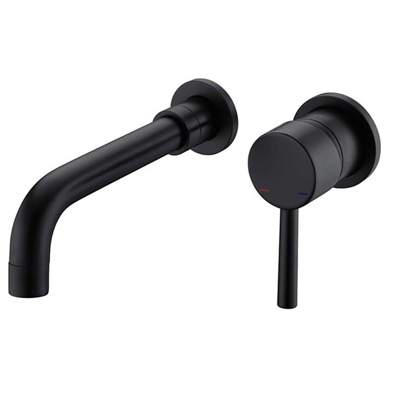 Modern Wall Mount Single Handle Bathroom Sink Faucet, Curved Spout – Matte Black Brass