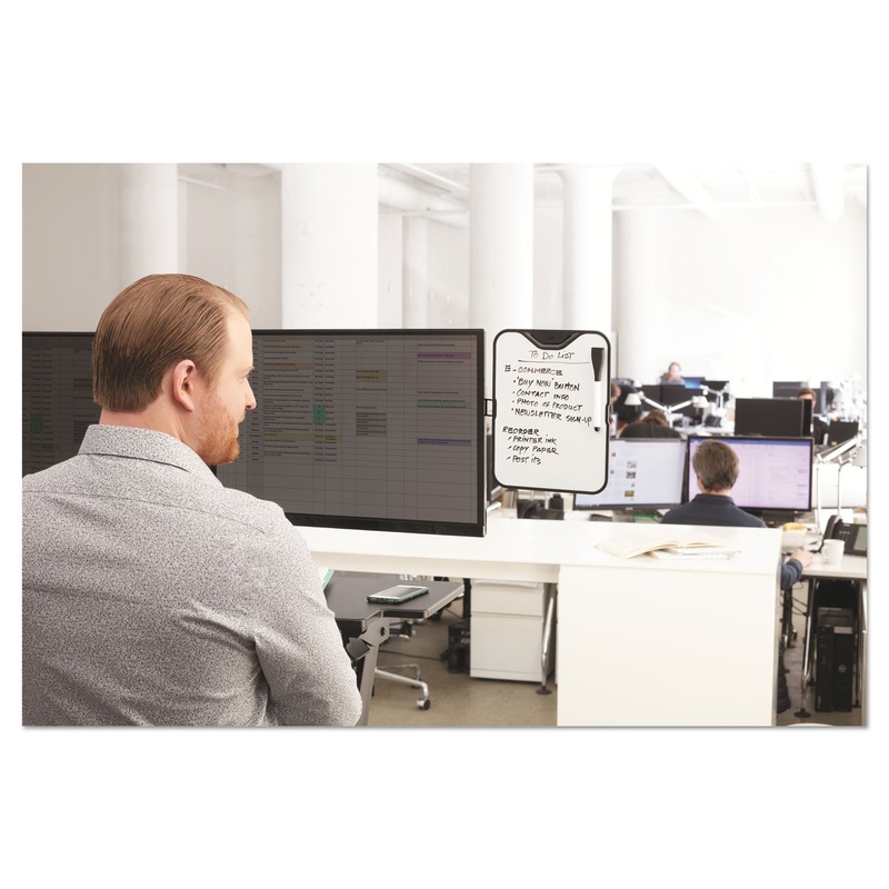 Monitor Whiteboard attaches securely to your monitor with Command Adhesive that can be easily applied and removed without damage. Features a magnetic attachment system (left- and right-handed), that's easy to detach for quick and comfortable writing. Saves