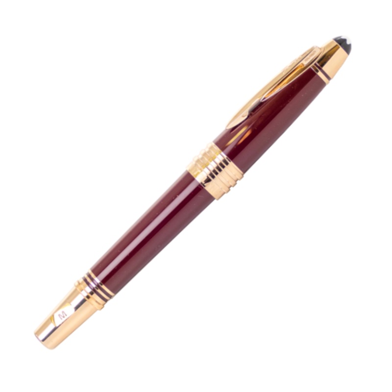 Commemorating one of the most revered figures in modern history, the Special Edition John F. Kennedy makes symbolic references to the life of J.F. Kennedy in subtle design details. The burgundy-colored precious resin refers to Kennedys famous Ivy League style and is inspired by his time at Harvard University. His initials JFK are engraved on the champagne-tone gold-coated fittings clip, and the three champagne-tone gold-coated cap rings stand for Kennedys three brothers. In a tribute to the national hopes and dreams embodied in Kennedys pet project, the Apollo space program, the handcrafted 585 gold nib is engraved with the lunar module that landed on the moon in 1969. The Special Edition is crowned by the Montblanc emblem in precious resin.