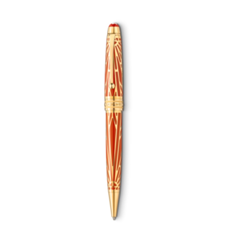 The intricate pattern on the gold-coated cap and barrel, partially coated with coral-coloured lacquer, harks back to an unreleased design that had been hidden away for decades, giving Montblanc the opportunity to finally introduce this long-forgotten design reminiscent of the Art Dco period. The clip is a homage to early clip shapes found in some of the first Meisterstck writing instruments, evoking a sense of nostalgia.