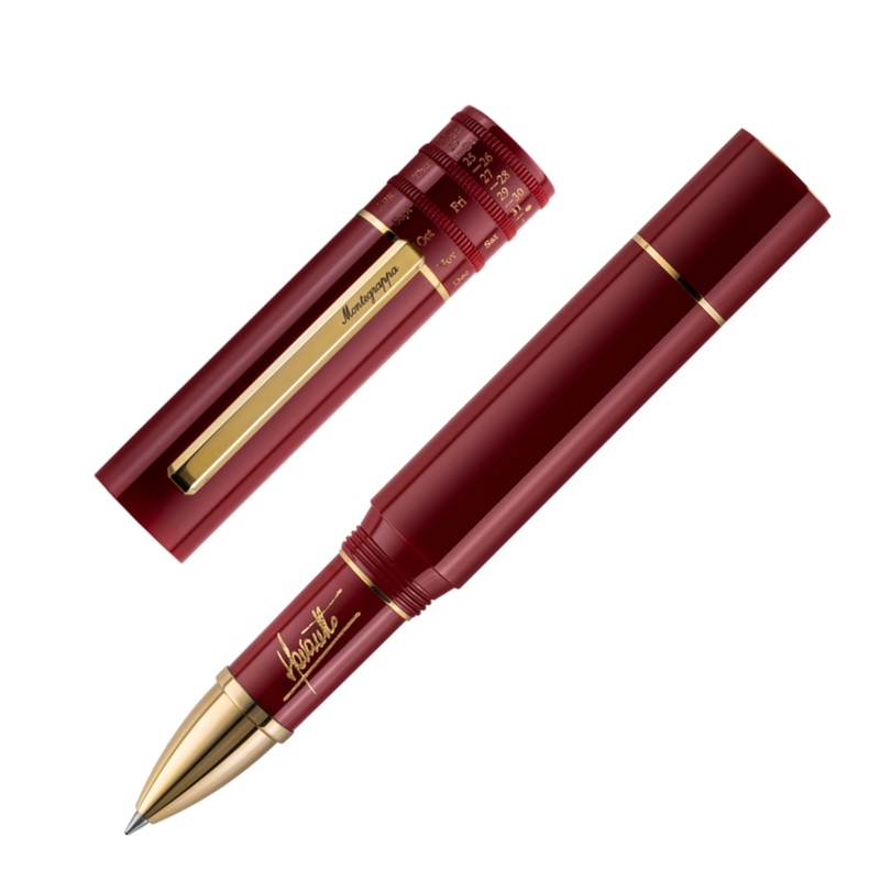 An edition of 365 rollerballs has been issued on two tiers: Maestro (raw black Delrin + stainless steel) and Supremo (polished burgundy resin + gold-plated brass).