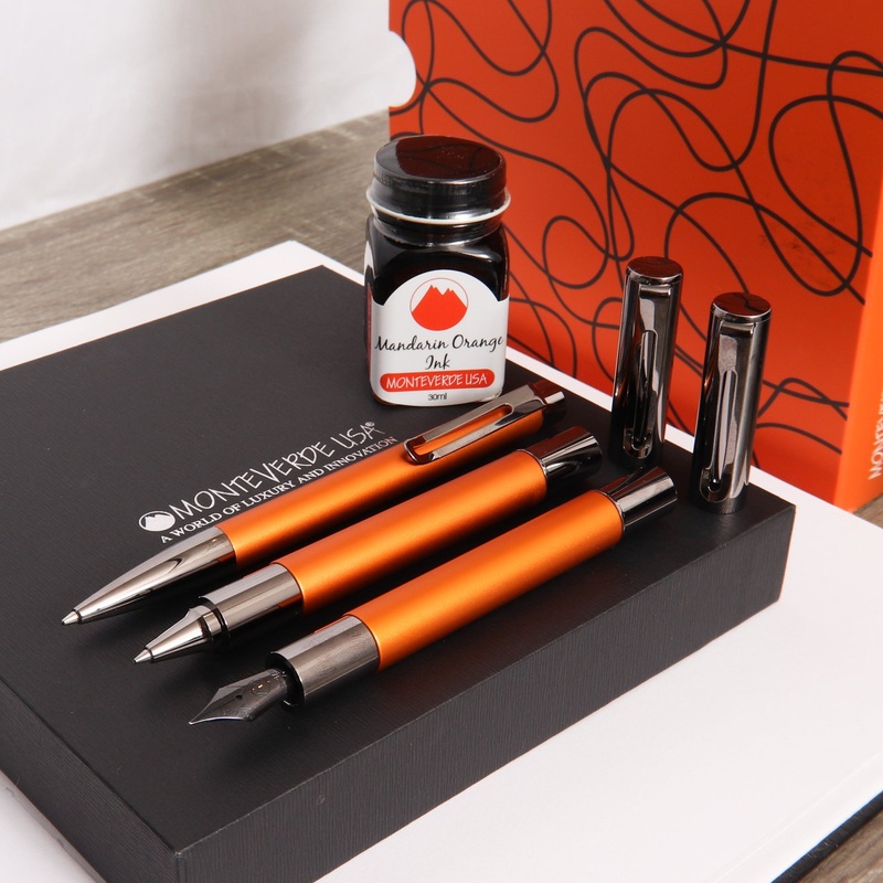 The Ritma special collectible edition collection is inspired by the minimalist movement of the 1960s and 70s, with its clean lines and straightforward designs. Machined to perfection using a mixture of steel, brass and aluminum, the Ritma boasts a streamlined design from magnetic cap top to back post, perfect for those who prefer a well-balanced and heavyweight pen. Each aluminum barrel is anodized and treated with a matte finish, resulting in a muted pop of orange color that is soft to the touch and beautifully accentuated with polished gunmetal accents. The clip is designed to match the straight lines of the body style with an extra flair, the center cut in an elongated oval shape for ease of use. An exciting feature of this minimalist pen is the magnetic cap and posting, so secure and perfectly designed to the pen it creates a seal. No need to twist off, gently pull and enjoy the striking pop-action sound of the seal opening, then post to the back to experience the secure magnetic seal there as well.