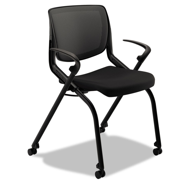 MOTIVATE NESTING/STACKING FLEX-BACK CHAIR, ONYX SEAT/BLACK BACK, BLACK BASE