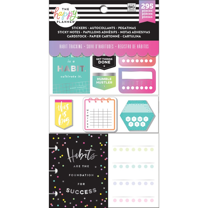 Make happiness a habit! This Multi Accessory Pack is a great way to add some fun to your planner pages. Complete with stickers, sticky notes and prepunched cards, your planner spread will look super cute while being very productive! Three popular planner a