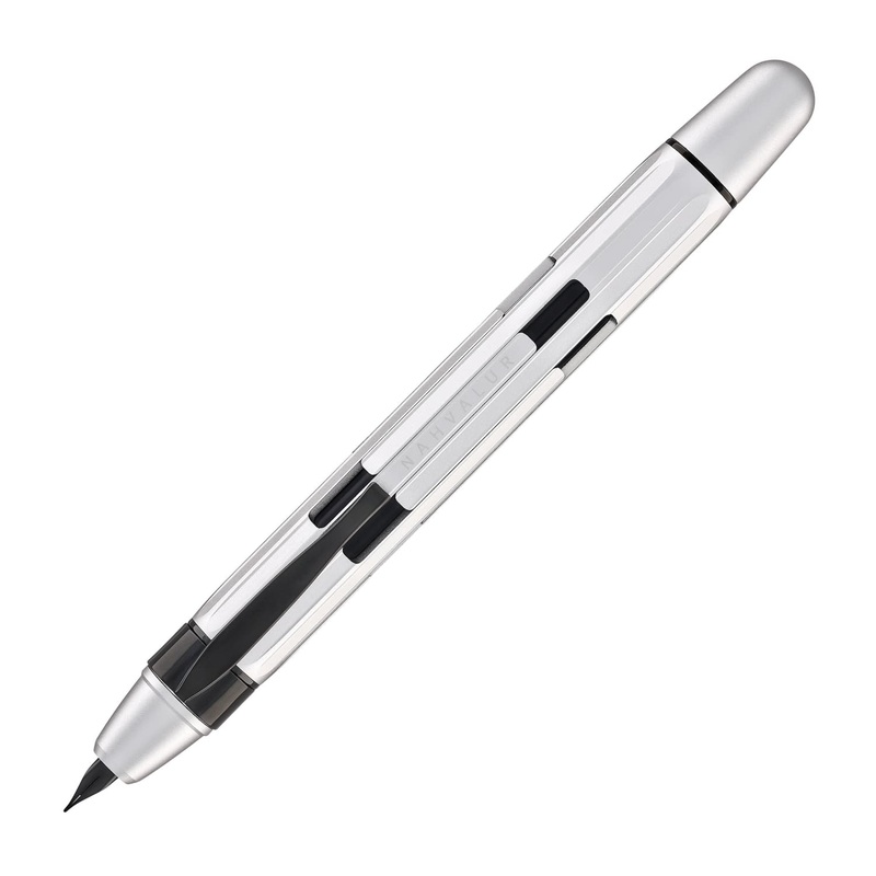 The semi-hooded, stainless steel nib writes with the same reliability and smoothness as other Nahvalur fountain pen nibs. The Eclipse fills with bottled ink using the included converter.