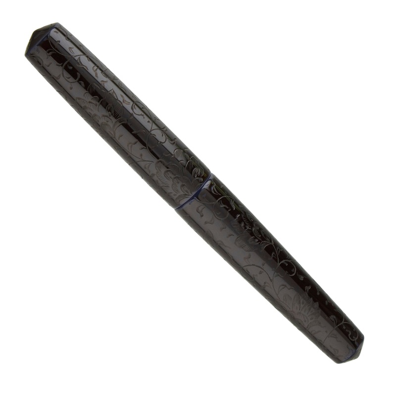 The carved motif is featured not only on the cap and barrel, but also the gripping section.