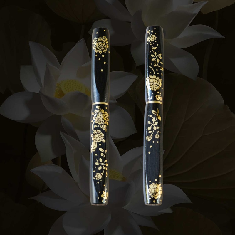 Note There are five variants of the Falling Lotus - Black Fountain Pen. It is limited to one pen per variant. Each variant has a slightly different design from the other, yet they are all designed with the motif of Falling Lotuses using the Lai Rot Nam Tec