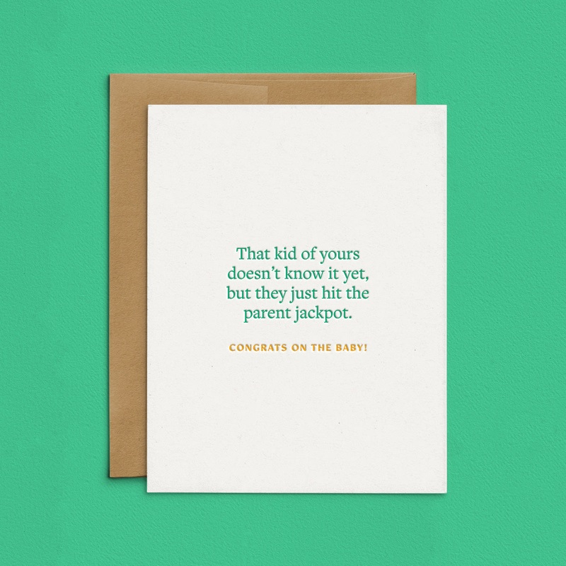 If there's one thing new parents have in common, it's that they're all a bundle of nerves that they'll somehow screw it up. Give 'em confidence and a chuckle with this card to let 'em know no one could do it better. (It'll be their favorite honest card amo