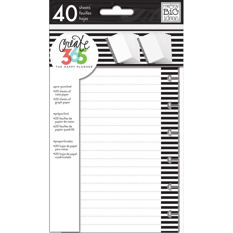 Are you a list maker? A note taker? How about a doodler? This pack of filler paper is just for you!Each package includes:40 sheets of pre-punched, double sided paper20 sheets of graph paper and 20 sheets of lined note paper.Dimensions: 4.625" x 7"Customize