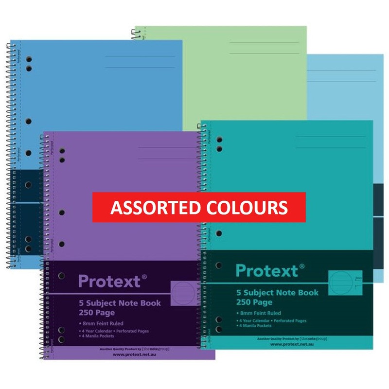 77X84W78NOTEBOOK PROTEXT PP A4 250pg 5 Subject 8 pockets ASST G29102