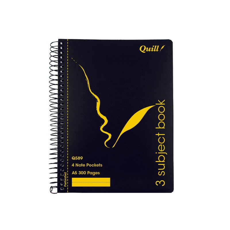 8W817X18NOTEBOOK QUILL A5 3 SUBJECT RULED S/O BLACK 300PG G85295