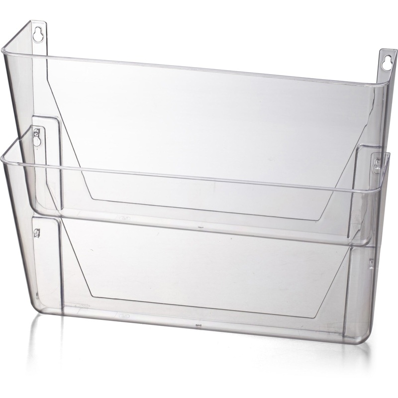 Space-saving, Mountable Wall File offers a unique design to conveniently add more files. Wall file holds letter-size documents and smaller items to keep your supplies organized. Easily mount to walls or partitions with included double-sided tape and mounting screws. Wall file is made of plastic for enhanced durability. Adjustable partition hanger is not included.