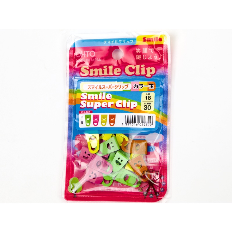 Ohto Smile Clips are made of stainless steel and can be used repeatedly to bind up to 30 sheets of copy paper. These friendly slim profile clips are strong and eco friendly.Multi color clip set includes 18 clips in a reusable transparent zip top caseEach c