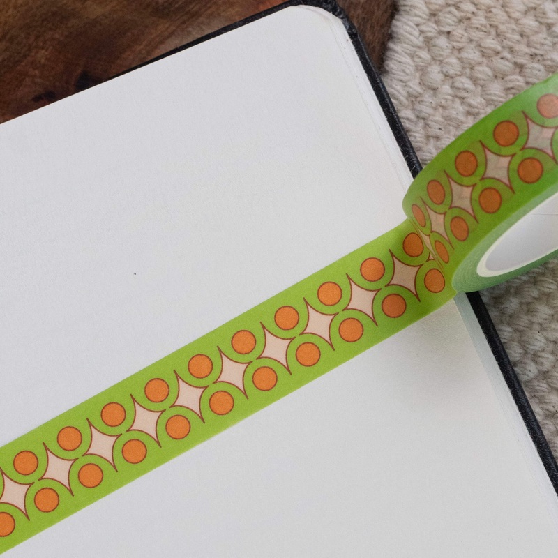 A olive coloured washi tape with somesparkle shapes added in for good measure. Use it to stick up prints, jazz up your journal spreads or just add a little extra colour into your life.Washi tape is a low tack decorative tape. It's a great way to add a litt