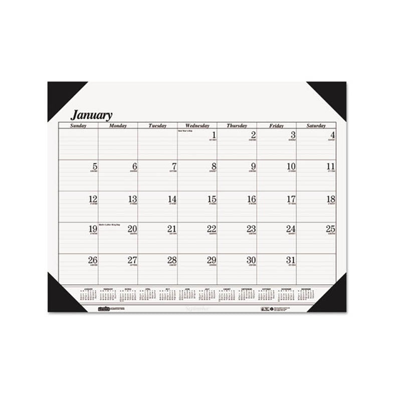 FeaturesElemental black-on-white in black holder for simplicity.Ruled daily blocks keep notations neat.Full-year reference calendar makes planning easier.DetailsElemental black-on-white in black holder for simplicity. Ruled daily blocks keep notations neat