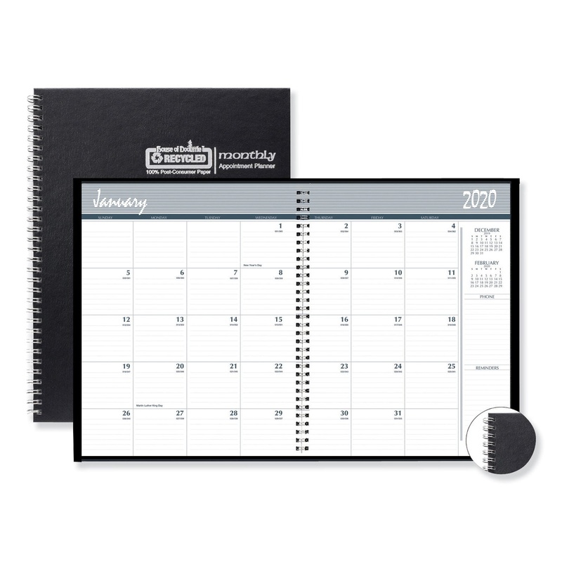 ONE-YEAR MONTHLY HARD COVER PLANNER, 11 X 8 1/2, BLACK, 2020