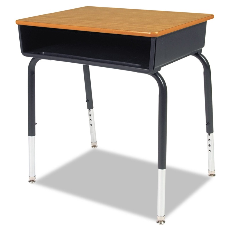 Vicro's popular 785 open-front student desk has just taken on a whole new look. Adjustable height desk with 18 x 24. This economical unit now comes in seven new bookbox colors to complement our fresh new Fusion Maple work surface and Silver Mist frame. Of