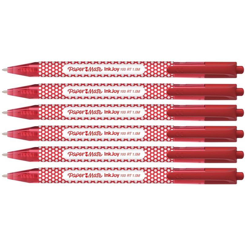 PapermateInkjoy 100 Red Polka Dot Ballpoint Red Ink Retractable Pack of 6 Quick DryingInk To Prevent Smears Smooth Writing Experience 1.0 mm Medium Point Retractable