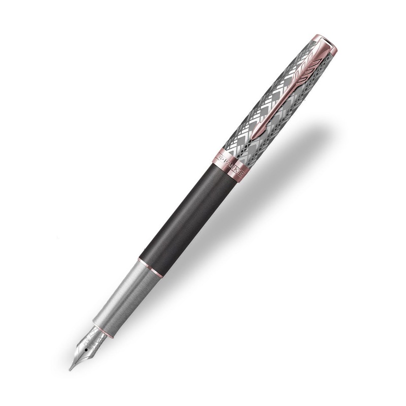 The Parker Sonnet is delicately assembledfrom 17 individual pieces and comes ina range of exceptional chiselled finishes and engraved patterns for a precious feel.The 2021 Parker Sonnet Premium range has been given a facelift and now features arich glossy lacquer finish with a deep chemical etched intricate cap pattern with rose gold plated appointments.