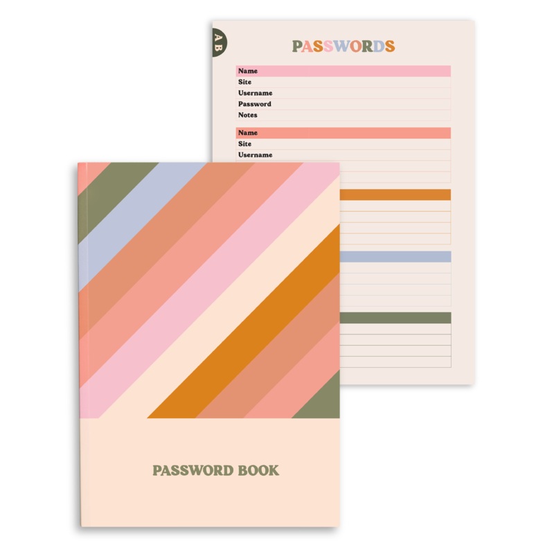 Never forget another password with this handy and stylish password book, alphabetically organised, with 20 entries per two letters.You'll find two quick view pages for most used passwords at the front of the book and two at the back for wifi details.// A5