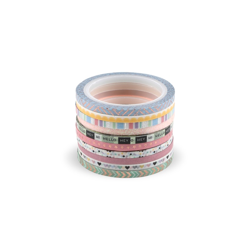 Who knew washi tape could be so cute?! This new skinny washi tape is ready to decorate yourHappy Planner or any other project you might be working on. Add a pop of color to your weekly spread to help make planning that much more fun!Each packageincludes 10