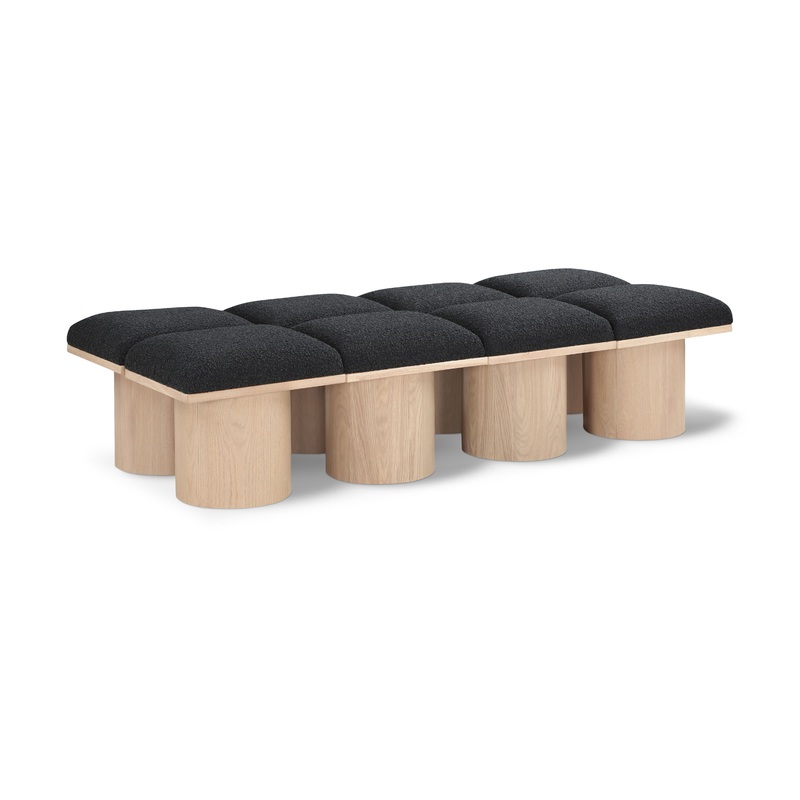 Bring valuable seating and remarkable style to your space with this Pavilion boucle fabric bench, an exquisite balance of style and usability for the entryway, bedroom, and beyond. Crafted from oak veneer with a natural finish, this bench has a 4-inch-thic