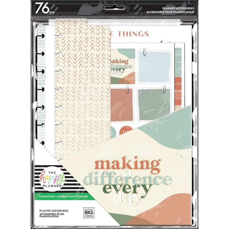 Homeschooling just got a little easier. This Happy Planner accessory pack has the tools you need to make a difference every day. Created for Big size Happy Planners, this pack includes 2 sticker sheets, pocket folder, note paper, and a bookmark. These items were designed in neutral earth tone color palettes and is the perfect addition to your planner.