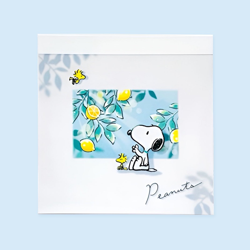 Why Youll Love It: 80 Themed Sheets Two fresh lemon grove illustrations Made in Japan Premium-quality paper with smooth writing flow Compact & Handy Ideal for quick notes, list-making, or journaling Serene Summer Aesthetic Perfect for relaxing spreads or snail mail Peanuts Magic Features a gentle Snoopy & Woodstock moment under the trees Cheerful & Collectible A citrusy must-have for Peanuts fans and cute stationery lovers!