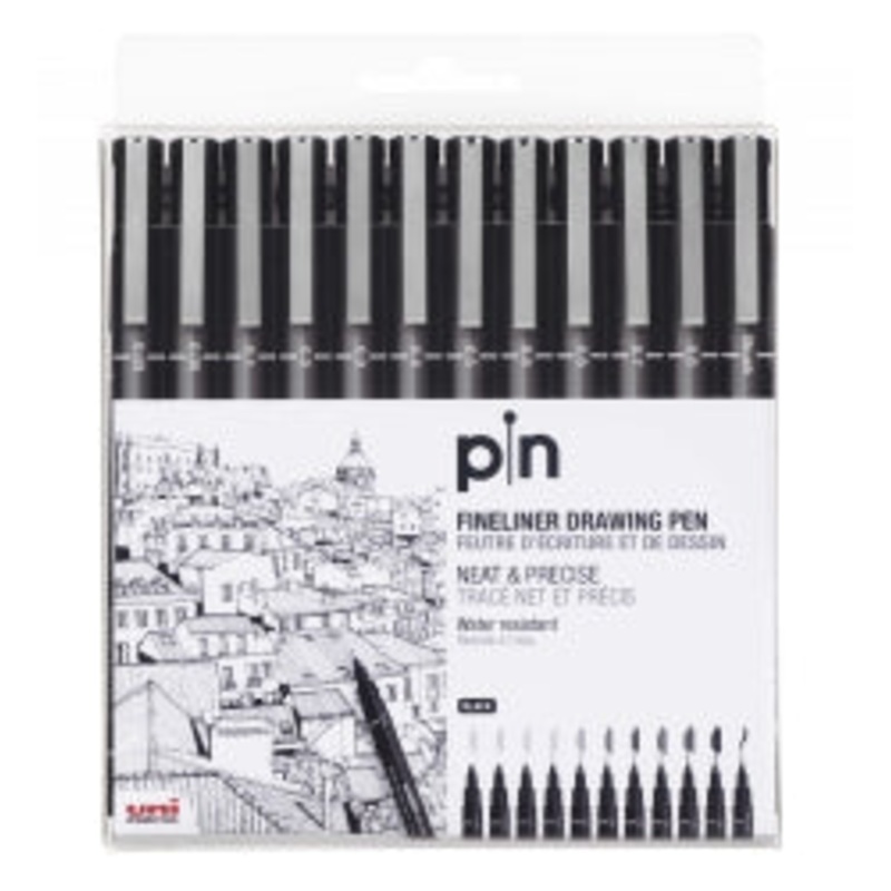 PEN UNI PIN FINELINER ASST SIZES BLACK WLT12 G47056